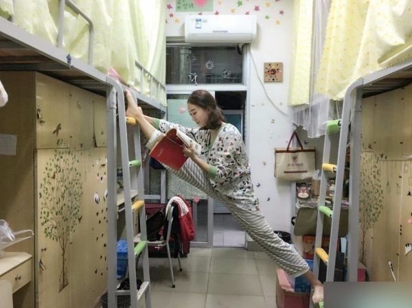 据了解,女生一直在练一字马,许多场合都在一字马,甚至看书和吃饭时也在练习。