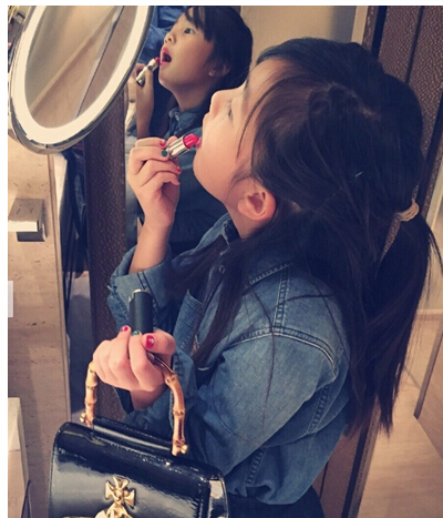 黄磊一家奔赴香港度假啦!多妹一身潮装照镜子涂口红,戴着墨镜酷酷哒!