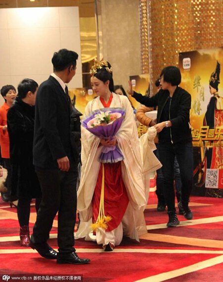 孙俪古装造型被簇拥排场大 获专人提裙边走边聊