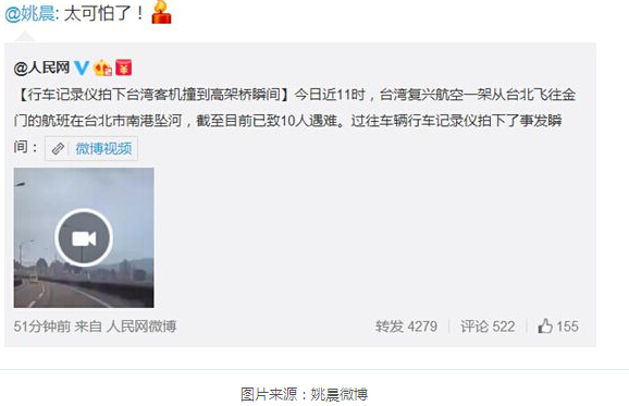 台湾艺人林志颖转发微博并为亡者“点蜡烛”;曹格则转发微博后以欲哭表情转达难过心情;郭采洁还通过社交网站连写4个“平安”祈祷。内地艺人姚晨留言“太可怕了!”并附上双手合十祈祷图像。