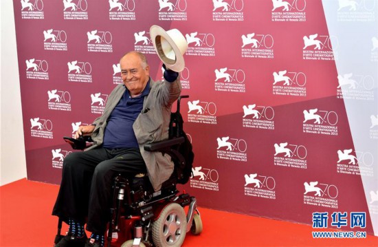 这是2013年8月28日,贝托鲁奇在意大利威尼斯出席第70届威尼斯电影节时的资料照片。 新华社发(许逆之 摄)