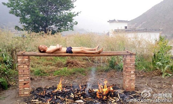 台媒称,云南一名25岁男子罹患白血病,因为没钱医治,只好在菜园里搭起木架,下方烧火,人则躺在上面让火烤,在42度高温持续半个多小时以上。他说,烤几天后再去医院检查,看看癌细胞有没有被杀死。