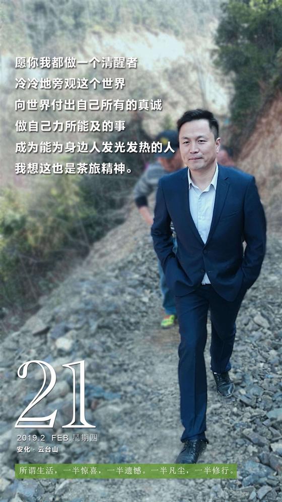 愿你我都做一个清醒者,冷冷的旁观这个世界,向世界付出自己所有的真诚,做自己力所能及的事情,成为能为身边人发光发亮的人,李亮想这就是茶旅精神。