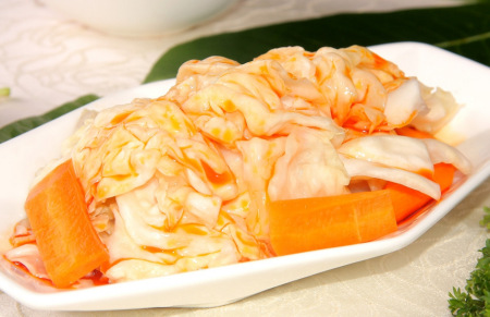 做法:圆白菜、胡萝卜、水萝卜、黄瓜分别洗净,切块。、罐子洗净擦干,放入花椒粒、盐、白砂糖,倒入适量凉开水,搅匀,放入切好的各种蔬菜,再加入少许白酒,密封,放置三至五天即可。