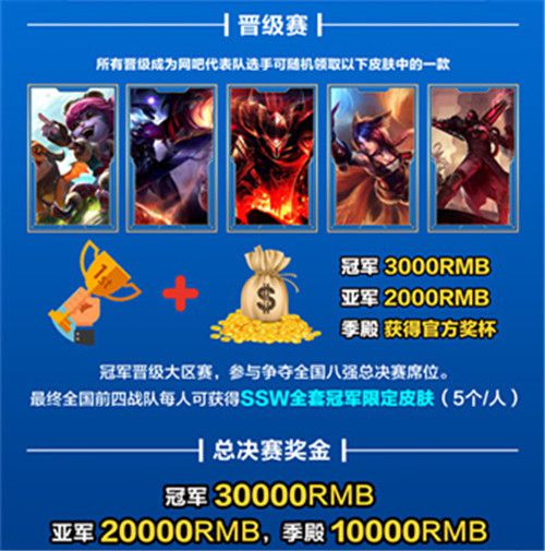 作为腾讯英雄联盟赛事体系的新面孔和重要补充,本次赛事不仅带来网吧用户的再度回流,也为参与赛事的用户准备了足够诚意的丰厚礼品。但凡参赛者均有机会抽取稀有皮肤,全国总决赛四强选手更可获得全套,SSW,限定皮肤,持久享受晋级荣誉。除此,奖杯、从2000到30000元不等的现金奖励也具备相当的吸引力。