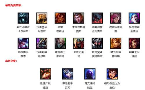 人民网北京1月17日电 (董思睿)《英雄联盟》官方公布了1月18日免费英雄,于当日10点左右更换每周免费英雄。新玩家们会发现就算你没有买英雄,在游戏中也有17个免费英雄可以使用。