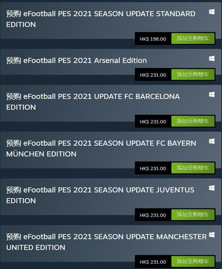 近日《实况足球2021》在Steam上开启预购(游戏锁国区),分为六个版本发售,普通版售价198港元(约合人民币178元),游戏将于9月16日发售,支持简体中文。