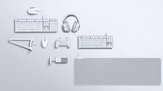 不知从何时起,深黑竟然成为了 PC 外设的主流配色。但是为了照顾那些钟爱纯白配件的客户,雷蛇(Razer)特地发布了 Mercury Collection 2019 九件套。套件中包括了键盘、鼠标、麦克风、耳机 / 支架、鼠标垫、甚至 PS4 游戏手柄,以充分满足你对于外设外观的一致性追求。