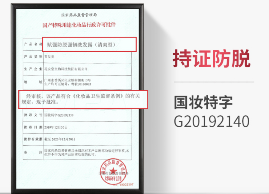 安全方面更是不用担心,赋强保证不添加任何对头皮和毛囊不利的物质,而且还通过了国家药监局的防脱特证,像这种证书可不是一般的洗发水/防脱洗发水能够拿得到的,然而赋强做到了,用实力证明它的防脱发生发效果,真的让人很难不爱上这款洗发水啊!