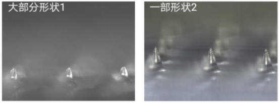 而某国产微针采用的是鼓风拉丝技术,等原料干燥后形成小的凸起,大部分形状是凸起的小山包形,只有,的一小部分是圆锥形,整个微针贴的针大小不一,形状不均,无法保证产品能均匀穿透角质层,实现充分的吸收。