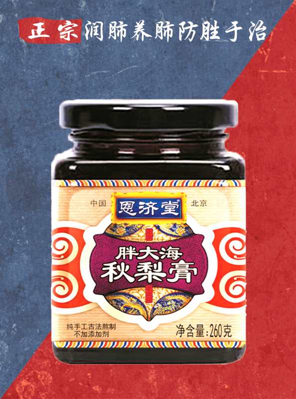 除此之外,想预防肺炎,还可以多食用一些有助于肺部的食物,比如雪梨,百合,蜂蜜等,都有助于滋润肺部帮助其修复自身。现在市面上也有很多养生饮品有助于人体器官的保护和修复,但要注意的是购买时要注意牌子和各种产品信息,不要上当受骗。市面上凡是号称能包治百病或者治疗癌症等的产品可以直接pass了,购买时应选择那些大品牌老字号,这样就比较有保障。如果线下超市、母婴店、药店等对产品资质和质量审核很严的渠道都没有销售,只在线上卖靠噱头和傍,活着的产品也要慎重。真有需要的话,这里推荐大家尝试一下恩济堂的秋梨膏。这款秋梨膏相传从唐朝就出现了,当时一直被秘密存于宫中,作为,御用根本不外传。一直到康熙年间,恩济堂的先祖御医刘恩济将其带出皇宫,并创办了恩济堂,后经过几代人的传承专门制作正宗北京特产御饮秋梨膏,百姓也因此获益。从那时起,恩济堂秋梨膏的名声越来越响亮,成了人们心中的大品牌老字号,秋梨膏止咳化痰,清肺润肺的功效也得到了大家的肯定,因此每年秋梨膏都十分的畅销。恩济堂秋梨膏的主要成分是梨,梨号称宗果之巅百果,,具有很好的清火润肺效果,经常食用可以很好的滋养人体的肺,对其受损的机能有部分修复作用。酸甜的口感,只需冲泡一勺,就可以随时保护自己的肺脏。