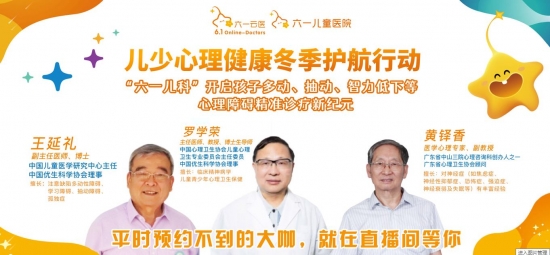 值此中国心理学会标准委“儿童心理障碍评估确诊指导,”广州基地成立一周年之际,11月20日-22日,由中国心理学会副主任罗学荣教授率团由来自儿童医疗、心理、教育、社会、康复多学科大咖将云聚羊城-广州,亲临六一儿童医院广州基地,开启儿少心理健康冬季护航行动,以“联合查房+联合会诊+精准医疗干预+公益直播”的方式为孩子及家长提供专业化、规范化的心理健康确诊指导咨询服务,让患儿家长对儿童心理障碍有一个正确认识,配合专业机构做好规范化治疗、干预及家庭康复。