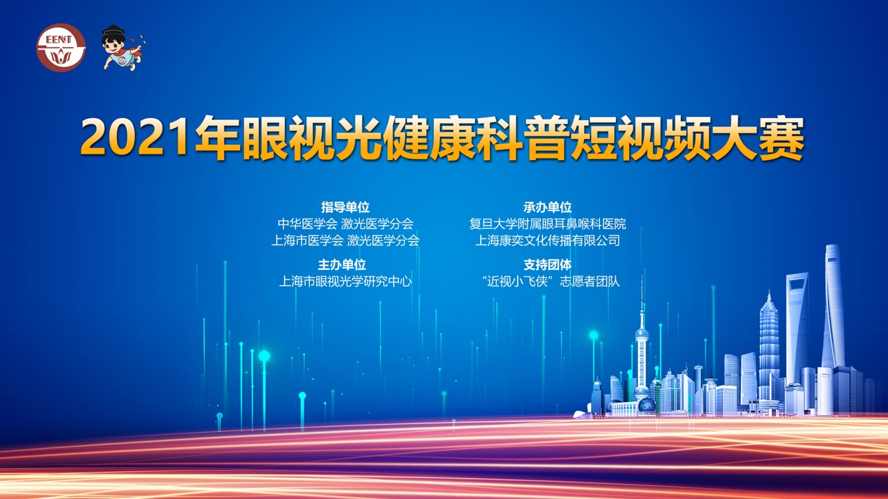 为了让眼视光健康知识的社会化科普走近每一位公众的身边,提高全民的眼视光健康意识,"2021眼视光健康科普短视频大赛"于2021年1月1日正式开启。本次大赛由上海市眼视光学研究中心主办,复旦大学附属眼耳鼻喉科医院、上海康奕文化传播有限公司承办。
