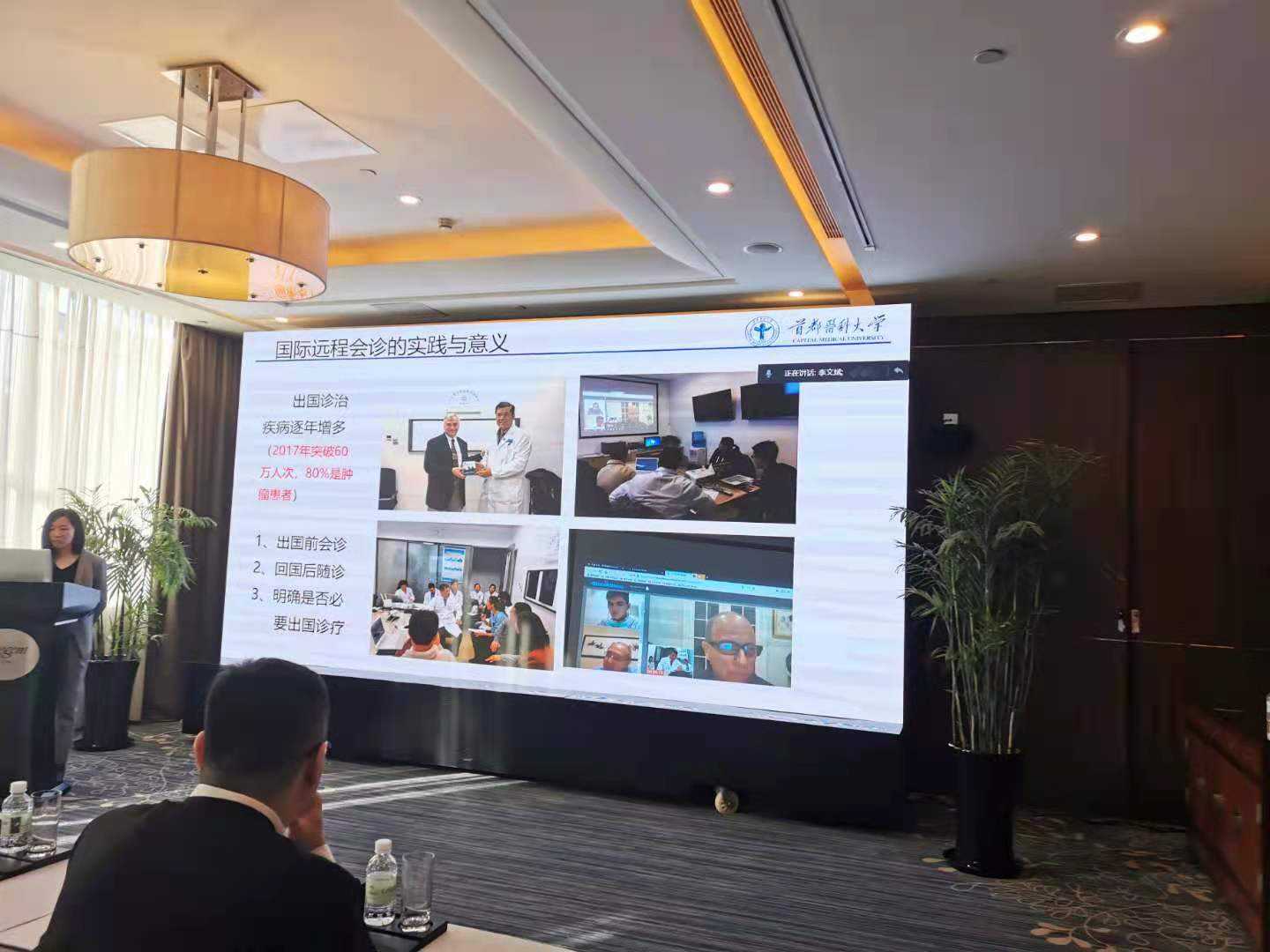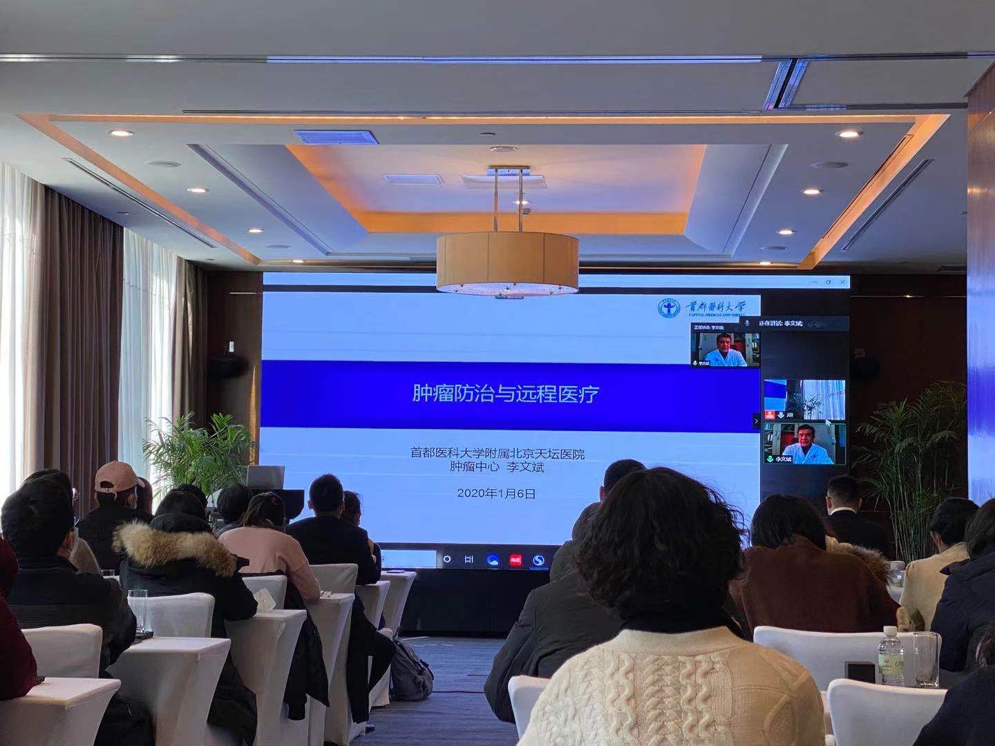 在活动上,来自首都医科大学附属北京天坛医院肿瘤中心主任李文斌教授以远程会议的模式分享了肿瘤治疗的发展历程、肿瘤的防治等信息,同时对多学科诊疗模式的运用做了详细的讲解。世界卫生组织(WHO)曾提出3分之一癌症是可以预防的,3分之一癌症通过早发现、早诊断、早治疗是可以治愈的,3分之一癌症通过适当治疗可以延长生存时间,提高生活质量。因此,多学科诊疗的新模式应运而生,多学科诊疗是由多学科资深专家以共同讨论的方式,为患者制定个性化诊疗方案的过程,尤其适用于肿瘤等复杂疾病的诊疗,从而为患者设计最佳诊疗方案,准确、迅速的确诊,选择最恰当的诊疗方案。同时通过互联网远程视频方式,可以获得海外,医院权威专家诊断治疗咨询建议,不出,,即可享受国内外,进的诊疗资源。