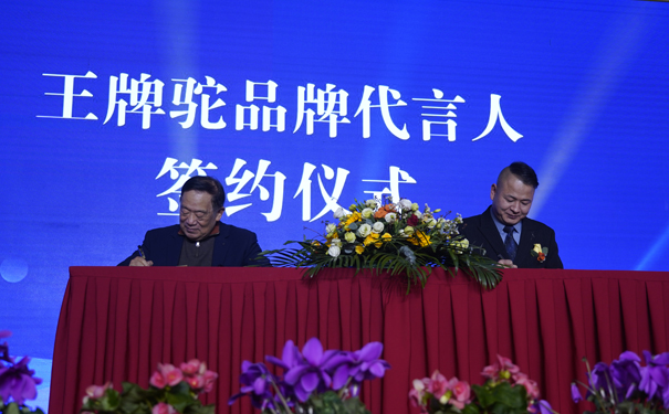 见到高明老师现身,王牌驼所有的家人们,包括喜欢老师影视作品的粉丝,顿时人气爆棚、热闹非凡,仿佛不只是一场新品发布会,气氛更像是专属王牌驼企业的盛大节日。现场座无虚席、人声鼎沸,新品发布会的一项项会议内容有条不紊地进行着,终于最激动人心的时刻来了,高明老师与王牌驼企业总经理刘伟续约,还和王牌驼营养大使代表亲密互动,合影拍照留念,将现场气氛推向高潮。