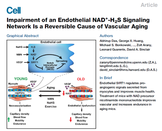 哈佛黑科技NMN是新兴起的抗衰物质,作为人体重要辅酶NAD+的直接前体,口服后可快速提升体内NAD+水平,有效激活长寿蛋白Sirtuins,修复受损DNA。2018年,NMN作用的发现者David Sinclair教授,在,学术期刊《Cell》上发表NMN逆转血管老化的研究成果(如下图所示)。NMN不仅对血管有益,还可帮助其他成分更好地发挥作用。