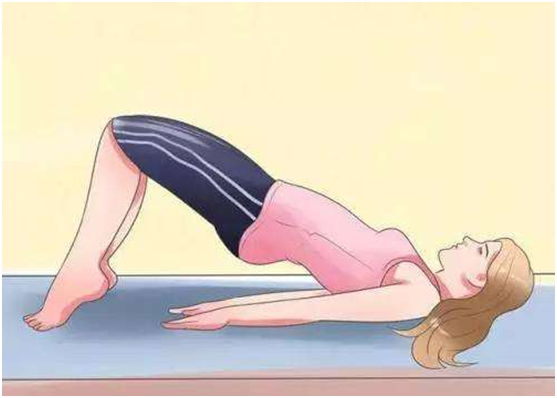2.平卧,双脚和肩部支地,挺起身体,,限度绷紧臀部肌肉,然后放松。