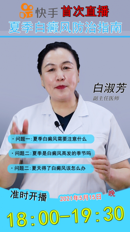 夏季是白癜风的高发季,很多白癜风患者一到夏季更是提心吊胆,特别担心白癜风发生扩散,那么在夏季该怎么解决白癜风扩散的问题呢?5月15日,北京国丹白癜风医院白淑芳主任快手平台直播为大家深度揭秘白癜风与季节的关系,届时欢迎大家关注,有任何白癜风以及皮肤相关问题均可在线咨询。