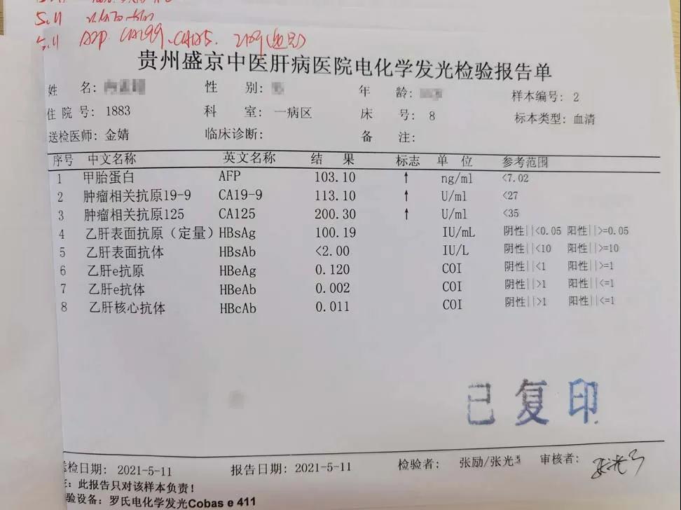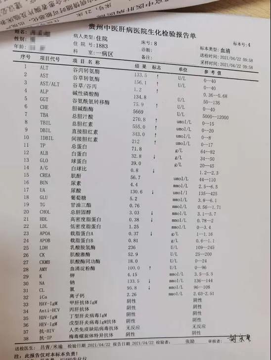 患者冉先生,入院前20天患者因食欲减退、厌油、恶心、干呕、伴全身皮肤巩膜黄染就诊于息烽县人民医院,诊断为:1、重症肝炎2、乙型病毒性肝炎,因患者病情重建议转上级医院治疗,遂转诊于贵阳市公共卫生救治中心,诊断为“乙肝,慢加急性肝衰竭”,积极予保肝、退黄疸、恩替卡韦胶囊抗病毒及1次血浆置换治疗,患者血清转氨酶逐渐下降,仍持续高黄疸,5天前腹胀不适,进食和输液后为甚,扔不喜油腻,为求进一步诊治就诊我院。