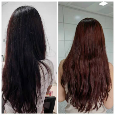 效果:上色均匀且快速,头发颜色鲜艳且明度高,比染之前更容易梳理,光泽顺滑。