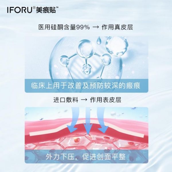 美皮护疤痕贴肉色的隐形美观、做的也很薄,可以根据伤口的需要进行剪裁。防水性透气性不错,不会出现使用后皮肤瘙痒的问题。IFORU是肉色的,贴在皮肤上几乎看不出来。很轻薄,表层有微微的凸点设计,边角做了圆润处理,贴的更牢固。有通过防水检测,洗澡的时候也可以用,防水透气性都不错,可以反复使用。
