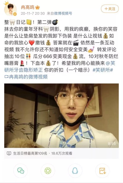 正畸是我特别特别关心的一步,因为这涉及到很大的颌面美观度,我见过正畸完成牙套脸的妹妹,也见过正畸完整个人变气质超级多的姐姐,所以我问了很多朋友,做了很多功课,,我决定去笑研所做,主要是看很多明星和网络上的红人,比如奇葩说的冉高鸣、青春有你的左卓等都是在他家矫正的。