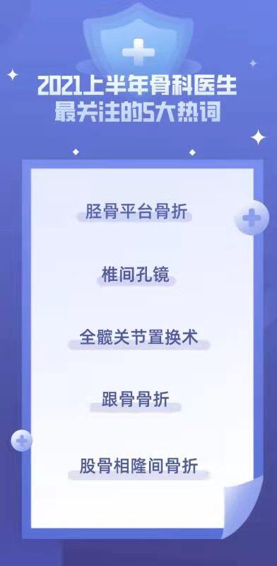 近日,唯医骨科发布上半年平台数据显示,今年上半年,骨科医生最常搜索的五个热词均与多发病、疑难手术相关,分别为“胫骨平台骨折”、“椎间孔镜”、“全髋关节置换术”、“跟骨骨折”、“股骨相隆间骨折”。唯医骨科平台目前已覆盖32万骨科医护群体,积累50万+学术资源,成为中国骨科医护不可或缺的工作学习平台。