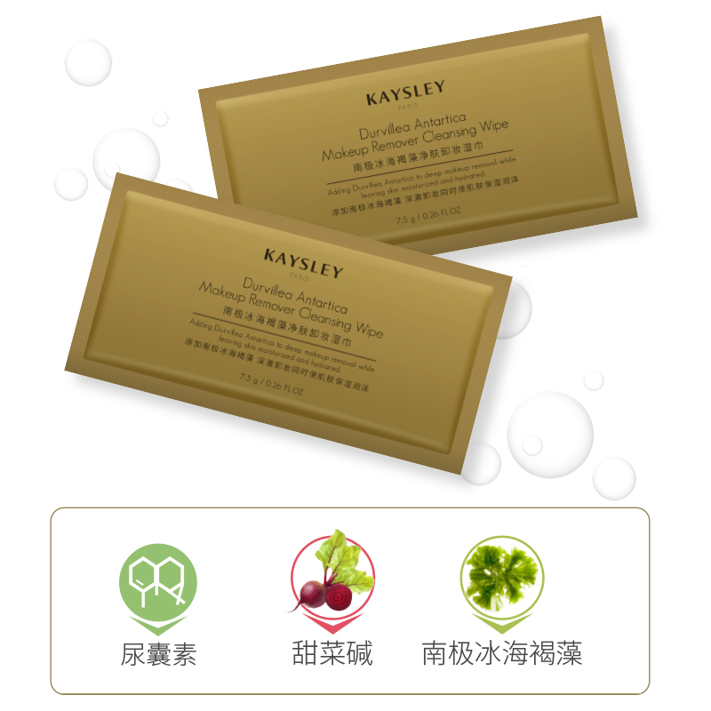 凯思黎南极冰海褐藻净肤卸妆湿巾,拒绝痘痘、黑头、发炎,轻轻一抹,唇、眼、两颊,快速卸妆无残留。