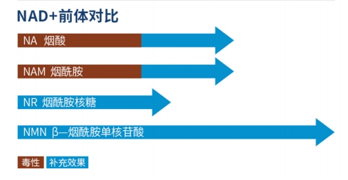 NMN对比NAD+的其他前体物质,在效果和副作用方面,又具有明显优势,所以NMN被誉为最理想的前体物质。
