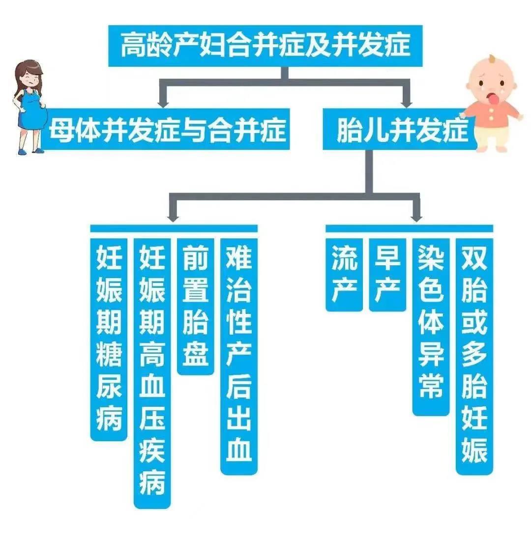 研究显示,高龄产妇由于其生理和内分泌特点,代谢的变化,以及随年龄增长,对内外科疾病的易感性,会使其产科的并发症及合并症风险急剧升高。