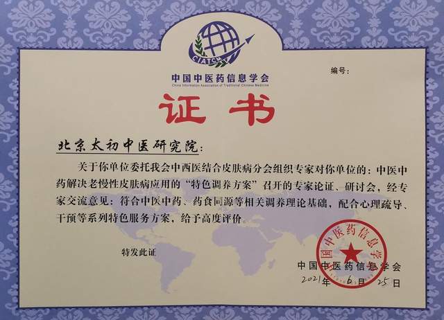 特色调养方案专项针对瘙痒、皮癣、湿疹、皮炎、荨麻疹等皮肤问题,以特色四联疗法为核心,深层次改善缓解,安全、有效、可长期使用。研究成果受到“中国中医药信息学会中西医结合皮肤病分会”的认可,方案及产品获得了学会的权威认证、备案。