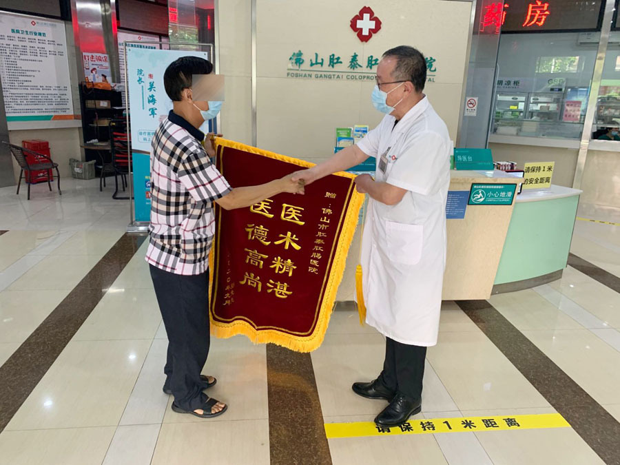 佛山肛泰肛肠医院正规吗?医护人员是不是真的用诚信对待患者,来院的患者朋友当然非常清楚,因为群众的眼睛是雪亮的,他们可以近距离地看到医护人员的一举一动。当他们在诚信的医院氛围下,得到了高水平的医疗服务治好自己的疾病之后,很多患者想要表达自己的感谢,例如送锦旗、水果篮、奶茶等等,下图是不久前患者彭先生专程来院送锦旗时,同关海军院长握手。