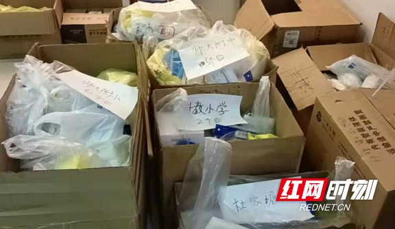 三真康复工作人员清点好检测用品、防护用品,整齐码好。