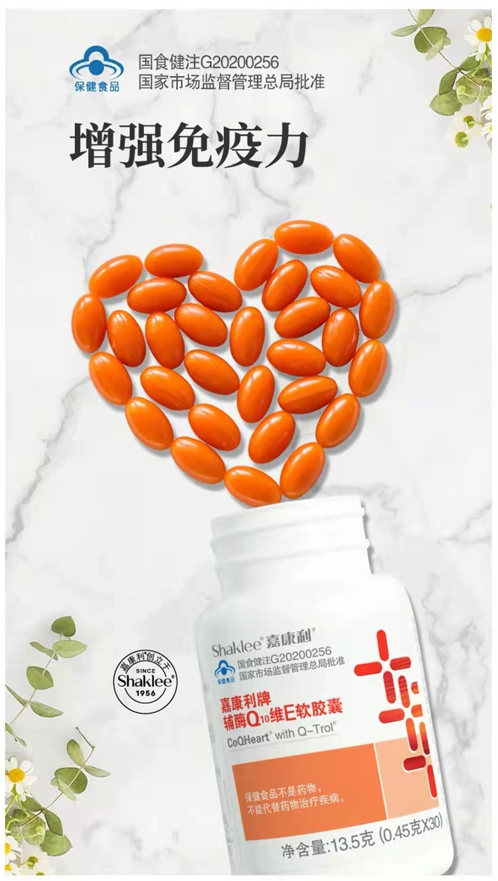 据了解,嘉康利辅酶Q10维E软胶囊为中国市场量身定制,遵循《国食药监许[2009]556号》标准,结合了维生素Q和维生素E双重营养元素,每粒含有35mg辅酶Q10和24mg维生素E,无论在配方还是含量都更适合国人的健康需求。并且,这款产品还获得了蓝帽认证,质量更有保障,使用更安心。与此同时,为了让营养充分发挥效用,人体更好的吸收利用。嘉康利在生产过程中采用了专利微生物发酵法提取,提取到的天然Q10,活性更高,能够提供更高的营养效能。再加上软胶囊设计,食用后能更快释放营养成分,还特别添加了橄榄油,帮助人体提高对于辅酶Q10的吸收利用。