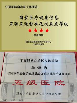 截至目前,宁夏回族自治区人民医院也是宁夏回族自治区内,一家同时通过国家医疗健康信息互联互通标准化成熟度测评四级甲等和电子病历系统功能应用水平分级评价五级的医院。