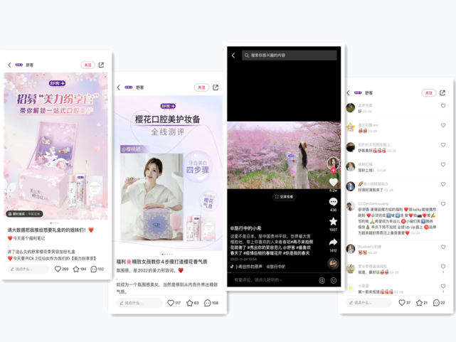 因此,舒客大胆地利用今年的春日樱花季展开多层次的跨界联动:特别邀请了摄影、国风、美食、旅行四个年轻群体重度关注领域的达人参与其中,共同开启美力赏樱之旅。让口腔护理与日常认知中的“美”深度结合,向年轻消费群体传递独特的“口腔美护”概念,在引发不同兴趣爱好人群交流互动的同时,实现口腔养护重要性的广泛传播。