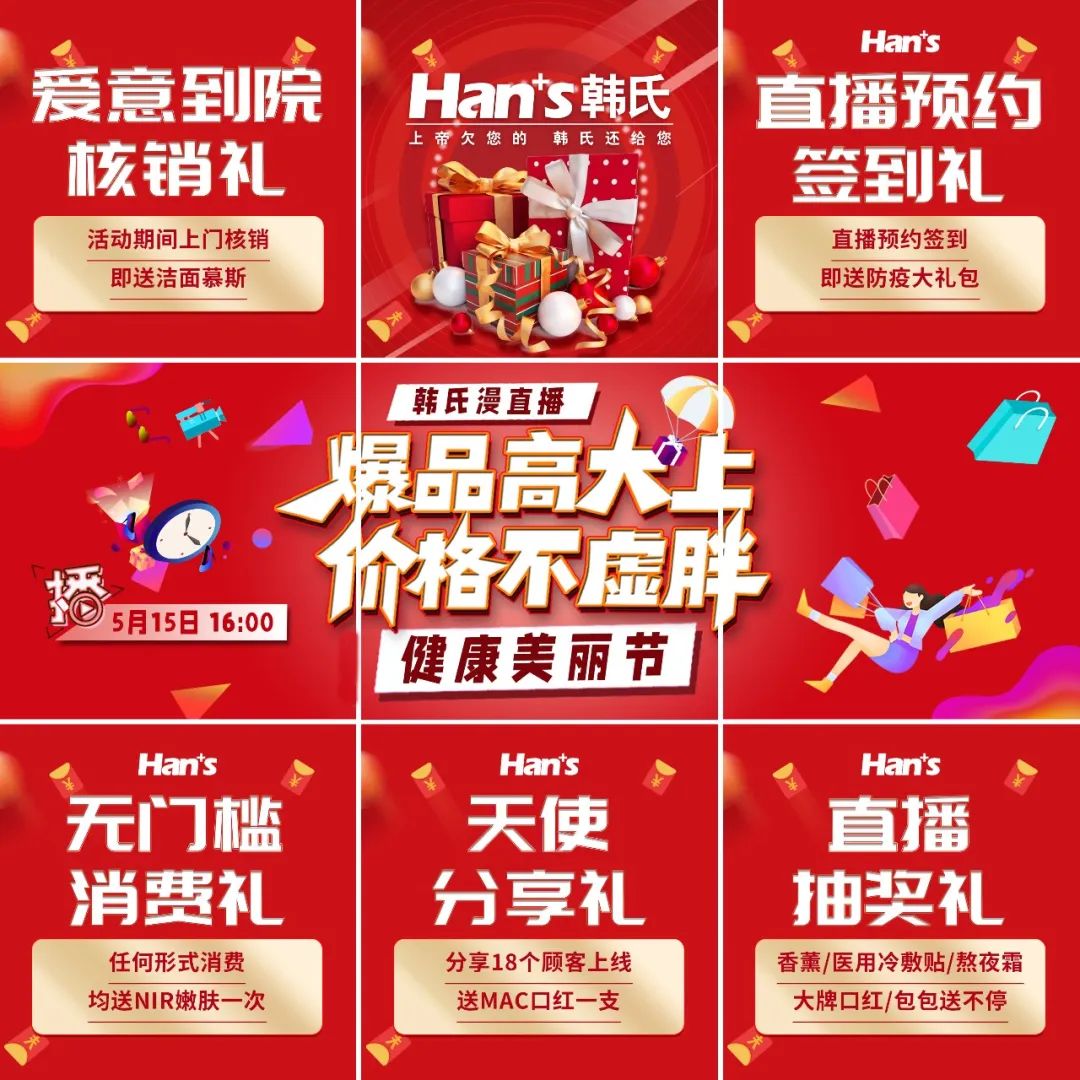 直播间的重磅当然是本次直播的各种医美项目,如果你的皮肤暗沉,毛孔粗大或暗黄,总之想要改善皮肤或者想要趁着炎炎夏日还没到来之前穿上美美的吊带露出纤细的臂膀,那一定不要错过此次直播间的各种活动。本次直播间每个项目都是精品,而且价格一折起,实惠实用真划算。提前给大家剧透几个活动项目,如果心动一定要记得准时蹲守5月15日下午四点的济南韩氏甄选回馈直播夜。济南韩氏小编先囤为敬。先给大家剧透一波直播间的一些福利,先睹为快。
