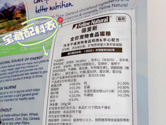 这款主食冻干使用的都是新西兰优质食材。牧场自由放牧,青草饲养,同源人用食材供应链,可从食碗追溯至牧场。比如无笼散养鸡,优质蛋白质和氨基酸来源,脂肪含量低,不含抗生素和激素,不易过敏,增强猫咪免疫力,有效帮助增肌。新鲜内脏,提供天然氨基酸、维生素和矿物质等营养元素,有助于猫咪均衡饮食。其他口味也有用到的像是天然草饲牛肉,富含蛋白质、微量元素、氨基酸等,有益于猫咪身体健康发育,助力增强免疫,不易生病。鳕鱼和帝王鲑,高蛋白,富含Omega-3脂肪酸,靓丽猫咪毛发,帮助脑部发育,提升视力健康。新西兰绿唇贻贝富含Omega-3脂肪酸,能够增强免疫系统、对皮肤和毛发有益。配合软骨素和葡萄糖胺,帮助软骨组织和骨骼增长。