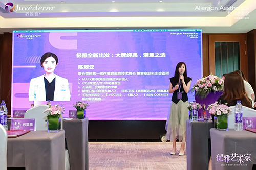 2022年7月5日,“优雅艺术家”乔雅登菁英医生大赛在京举办,旨在为医美行业菁英医生搭建起交流平台,不仅是专业之术的碰撞,更是美学沟通之艺的升华。联合丽格第一医院技术院长陈翠云作为艾尔建学苑的专家培训导师和指定注射专家,作为嘉宾评委受邀参加此次大赛,点评参赛者表现的同时,也进行了学术分享。