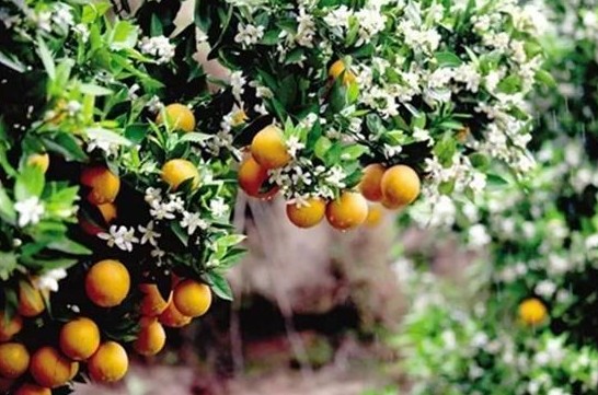 橘树:即桔树、金桔。果实色泽呈红、黄充满喜庆,象征吉祥、富贵。盆栽甘桔是人们新春时节家庭的重要摆设,而桔叶更有疏肝解郁功能,能够为家中带来欢乐。