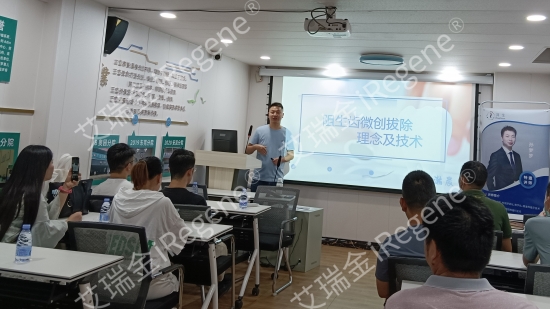 孙梦梦讲师首先为大家分析了阻生牙的临床分类与危害,接着主要围绕阻生齿微创拔除理念及技术进行授课,并指导大家应用艾瑞金胶原蛋白海绵及艾瑞金海思莱口腔抑菌凝胶进行实操培训。海思莱口腔抑菌凝胶是艾瑞金推出的以聚六亚甲基双胍盐酸盐与葡萄糖酸氯己定复配型口腔抑菌凝胶,对于金黄色葡萄球菌、大肠杆菌和白色念珠菌等起到抑菌消炎作用,抑菌率达99.99%。