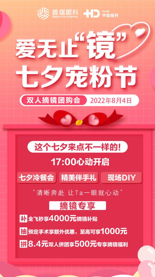 当然,作为深耕眼科多年的专业眼科机构,华德眼科怎么可能会少了近视手术的福利。在这个七夕,为所有近视朋友特别推出专属福利。不止是七夕专享补贴、额外福利抽奖,更有双人拼团活动。三重摘镜权益,近视党们,别犹豫啦,让你在这个七夕清晰看清心爱的TA…
