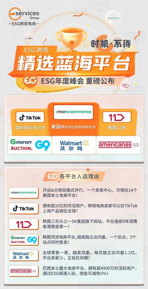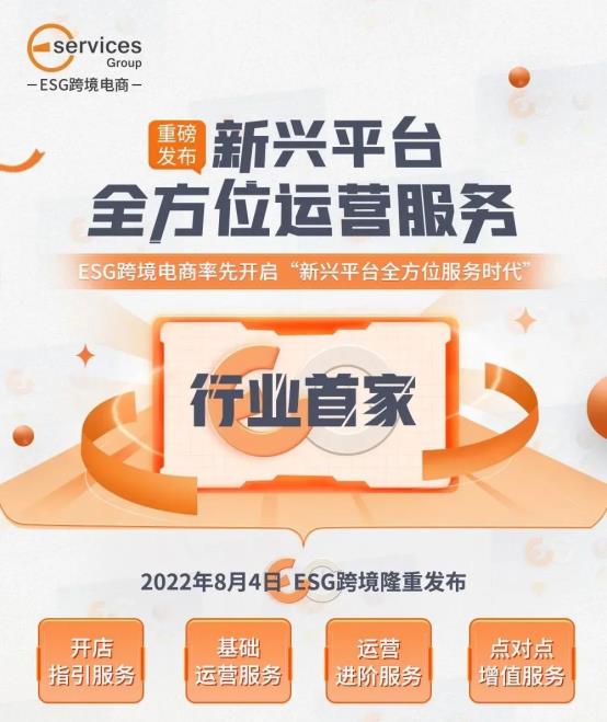 ESG跨境2002年进入跨境电商行业,是国内,提供新兴平台运营服务的企业,累计服务过100000+个电商企业的跨境电商企业。2022年,是ESG跨境电商深度转型的关键之年。在8月4日跨境年度峰会上,重磅发布了开店指引、基础运营、运营进阶、点对点增值服务……一站式解决跨境商家所有出海痛点。ESG率先开启“新兴平台全方位服务时代”。