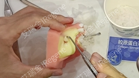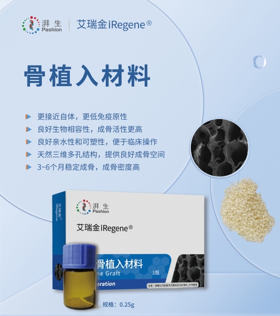 冯楠老师使用的骨粉为艾瑞金骨植入材料,艾瑞金骨植入材料具有更接近自体,更低免疫原性;良好生物相容性,成骨活性更高;良好亲水性和可塑性,便于临床操作;天然三维多孔结构,提供良好成骨空间;3~6个月稳定成骨,成骨密度高等优势,可以应用于拔牙后位点保存,预防干槽症;根尖切除后、囊肿刮除后、种植体周等的骨缺损填充;牙周骨缺损填充;牙槽嵴扩建及骨增量;上颌窦提升等骨缺损修复等。