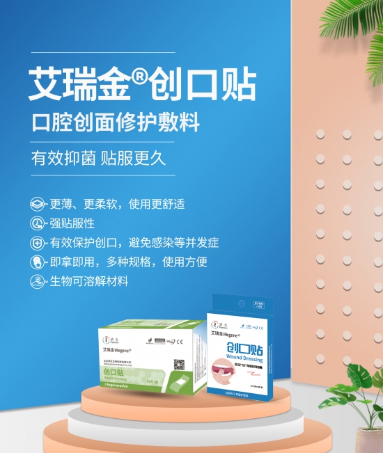 艾瑞金iRegene,是北京湃生的口腔医学品牌,专注于去端肽胶原蛋白再生医学材料的研究与应用,目前已推出三项三类去端肽胶原蛋白高端医疗器械产品:胶原蛋白海绵、可吸收生物修复膜和艾瑞金骨植入材料,以及口腔抑菌凝胶(牙周专用)、创口贴(口腔溃疡)、口腔抑菌喷剂、口腔抑菌含漱液、牙菌斑指示剂、口腔抑菌膏、免洗外科手消毒凝胶等数十款护理消毒系列产品,全系列产品可被广泛应用于各种口腔手术的术前检查、术中抑菌及手术治疗、和术后创口护理等,服务整个口腔修护全周期!艾瑞金口腔护理包产品上市后,更受到各界消费者的好评!