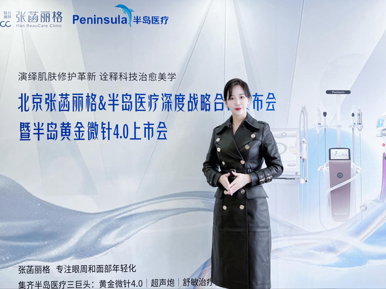 张鑫医生发布会发言:“半岛黄金微针4.0这款仪器,利用镀过黄金的细小微针将RF能量精确作用于靶组织,可安全、准确、均匀有效地加热深层真皮的胶原蛋白,使胶原纤维收缩、重塑,让面部达到美容年轻的效果有效的展现。相信半岛黄金微针和张菡丽格的联动,必将推动皮肤美容技术临床应用上迈向更高水平,给广大求美者更专业、更好的皮肤年轻化体验。”