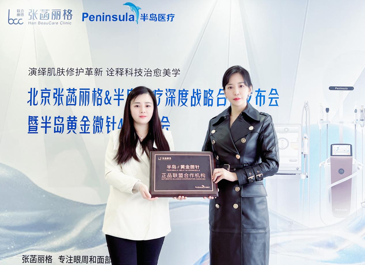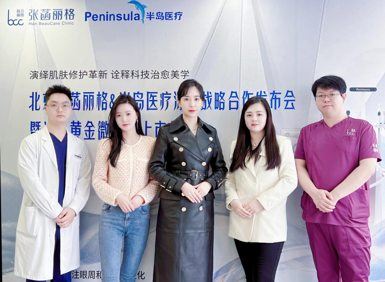 2022年11月9号,北京张菡丽格医疗美容与半岛集团再次达成战略合作,半岛集团黑科技「半岛黄金微针4.0」入驻北京张菡丽格医疗美容,张菡丽格医疗美容技术院长张菡女士、运营院长陈玲女士、整形外科主任张鑫医生、整形外科马平山医生,半岛医疗华北销售经理陈玥臻女士到场参会,并举行了上市会和授牌仪式。