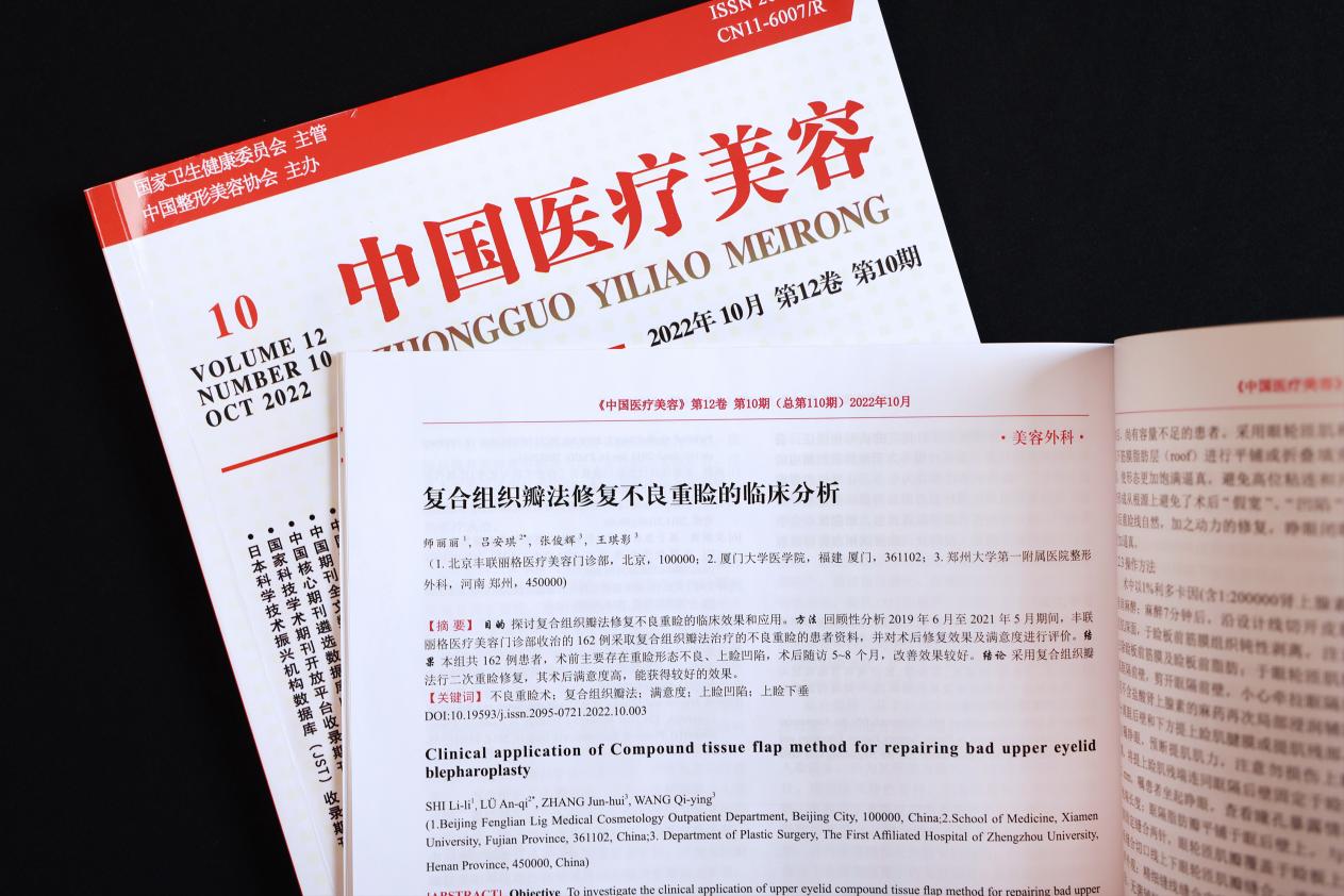 近日,北京丰联丽格师丽丽院长在国内临床医学期刊《中国医疗美容》第10期发表论文:《复合组织瓣法修复不良重睑的临床分析》。通过回顾分析 2019年6月至2021年5月期间,丰丽格医疗美容门诊部收治的162例采取复合组织瓣法治疗的不良重睑(双眼皮手术失败)的患者资料,及术后修复效果满意度等,进一步探讨复合组织瓣法修复不良重睑的临床效果和应用。