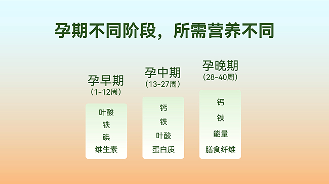 妊娠期是生命早期1000天的起始阶段,无论是孕期胎儿的生长发育、母体生殖器官的发育都需要额外的营养。中国妇幼营养分指出,孕期妇女在不同阶段的膳食应在非孕妇女的基础上,根据胎儿生长速率及母体生理和代谢的变化进行适当的调整。也就是说,孕妈妈在孕期不同阶段会有不同的营养需求。