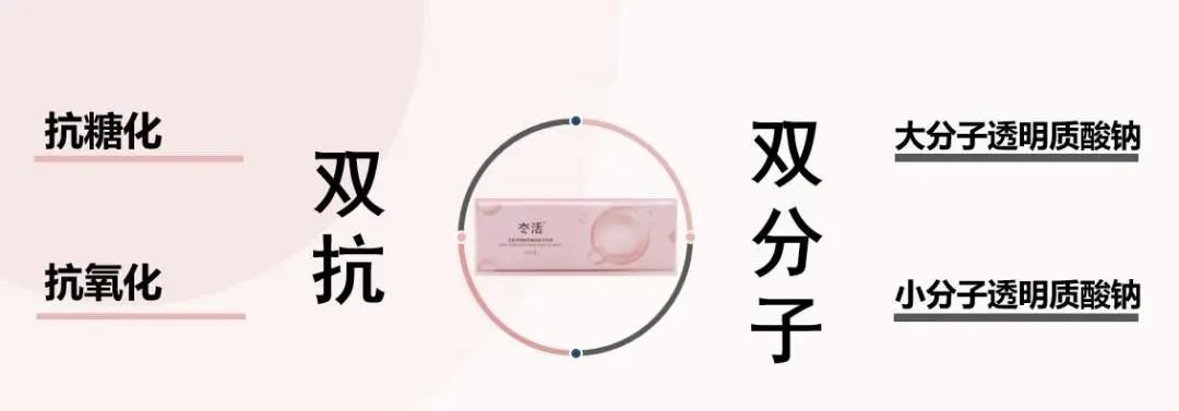 02双分子非交联透明质酸:大分子透明质酸能够软化角质层,增强角质层的呼吸;小分子透明质酸能够补充细胞外基质,增强成纤维细胞活性,提升皮肤亮度、舒缓皱纹。二者结合,作用在皮肤中,起到吸水膨胀、保持含水量的作用。